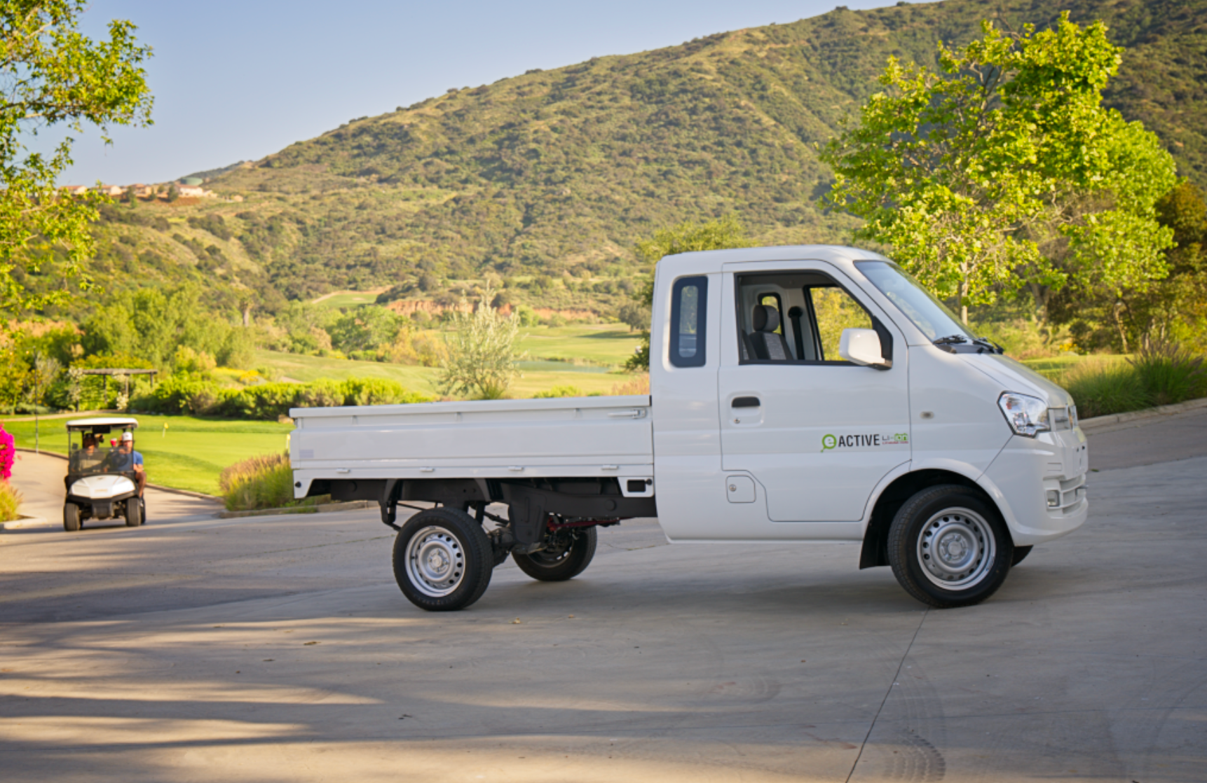 This full-size LSV pickup truck boasts a strong unibody design, protected by a Rhino coating that prevents rust, that ensures top performance in hospitality environments. Whether it's for luggage transport or maintenance tasks, the truck remains dependable.