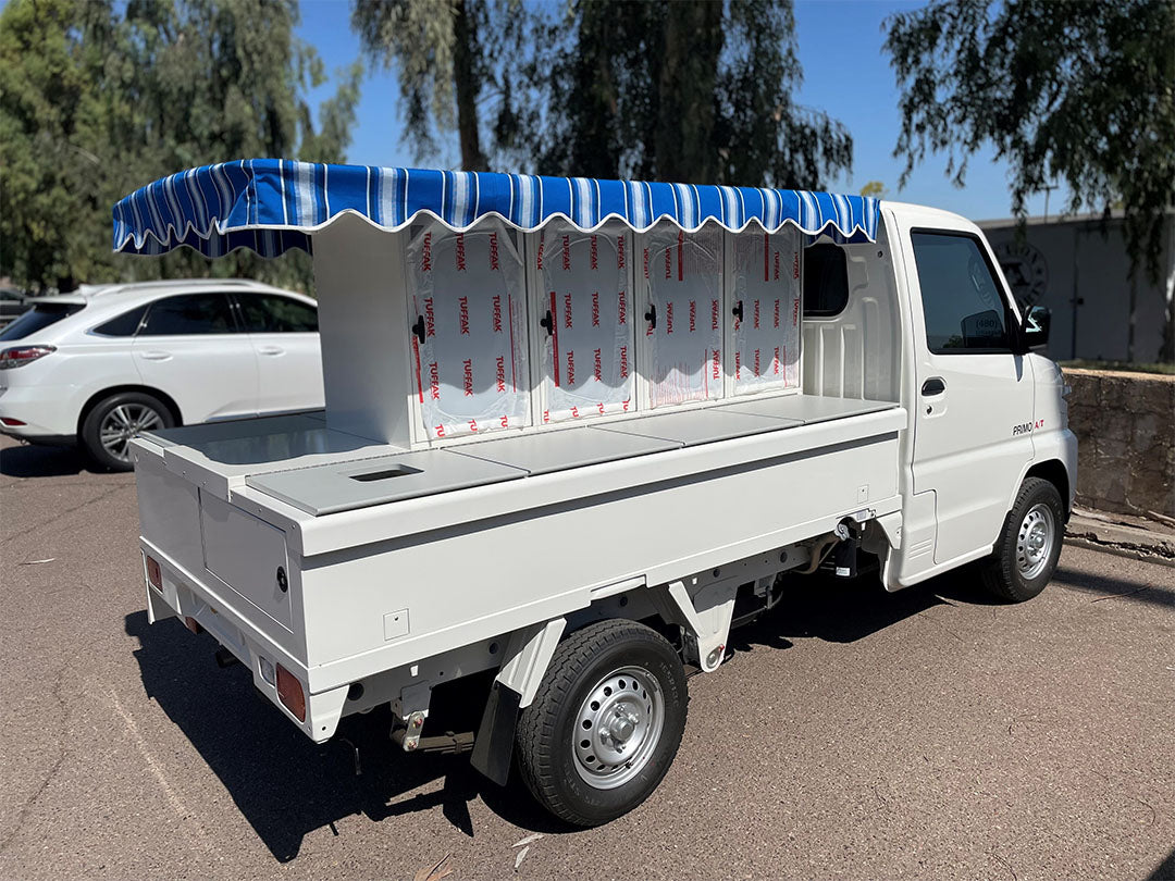 Our vehicles offer a diverse selection of factory options, encompassing various features such as battery pack capacities, tipper dump capabilities, trash hopper arrangements, turf tires, ladder rack installations, aluminum stake beds, tool boxes, and many additional options and accessories.